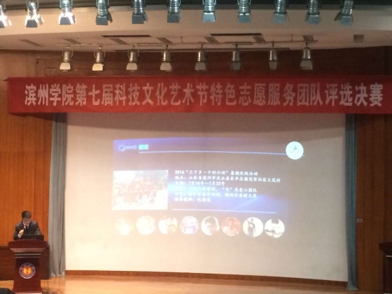 4月24日晚7点半,机电工程公司于学苑会堂第二报告厅参加滨州公司第七届科技文化艺术节特色志愿服务团队评选决赛,公司赵志成代表“’机’承雷锋,’电’亮爱心”志愿服务团队上台答辩,公司共20名员工到场聆听。