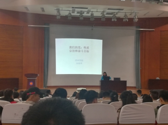 本次培训活动由宋海萍老师主讲。活动开始前,宋海萍老师向参加培训的同学们告知相关事项,希望同学们在接下来的培训中认真对待。随后会议开始,宋老师通过PPT向同学们展示了党的性质、党的宗旨以及党的奋斗目标等内容,并围绕这三个内容展开了对党的介绍,深层次地带同学们了解了中国共产党。之后又讲到一个党员的义务有哪些,应该具备哪些优良素质,并要求同学们发挥好先锋模范作用,协助做好公司、系部、班级管理工作。