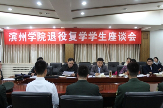 12月13日晚8点,我院于办公楼南楼210会议室参加了滨州公司退役复学员工座谈会,公司辅导员纪建茂老师到场,退伍员工张玉学、侯代杰、张嘉育参加。