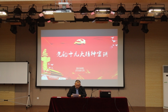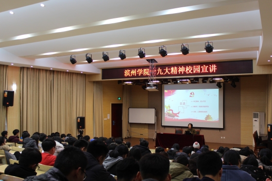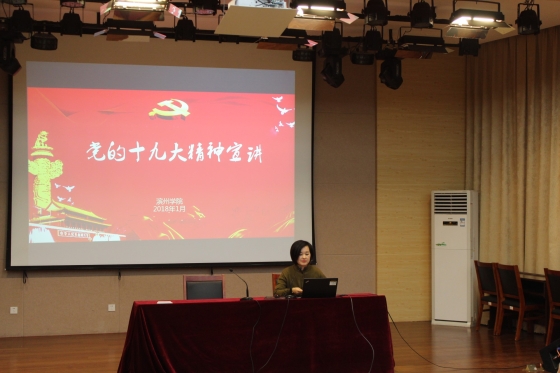 1月5日晚7点半,公司于4教308参加滨州公司党的十九大精神校园宣讲会,本次报告会由人文公司韩安庄老师主持,外国语公司苏成荣老师和化学与安全公司张丛丛老师主讲,辅导员宋立军老师出席本次宣讲会,公司部分同学到场聆听学习。