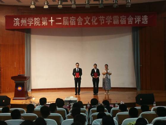 5月14日晚7点半,公司于学苑会堂参加滨州公司第十二届宿舍文化节学霸宿舍评选活动。公司11号楼4楼活动室参赛,靳雪银老师到场。