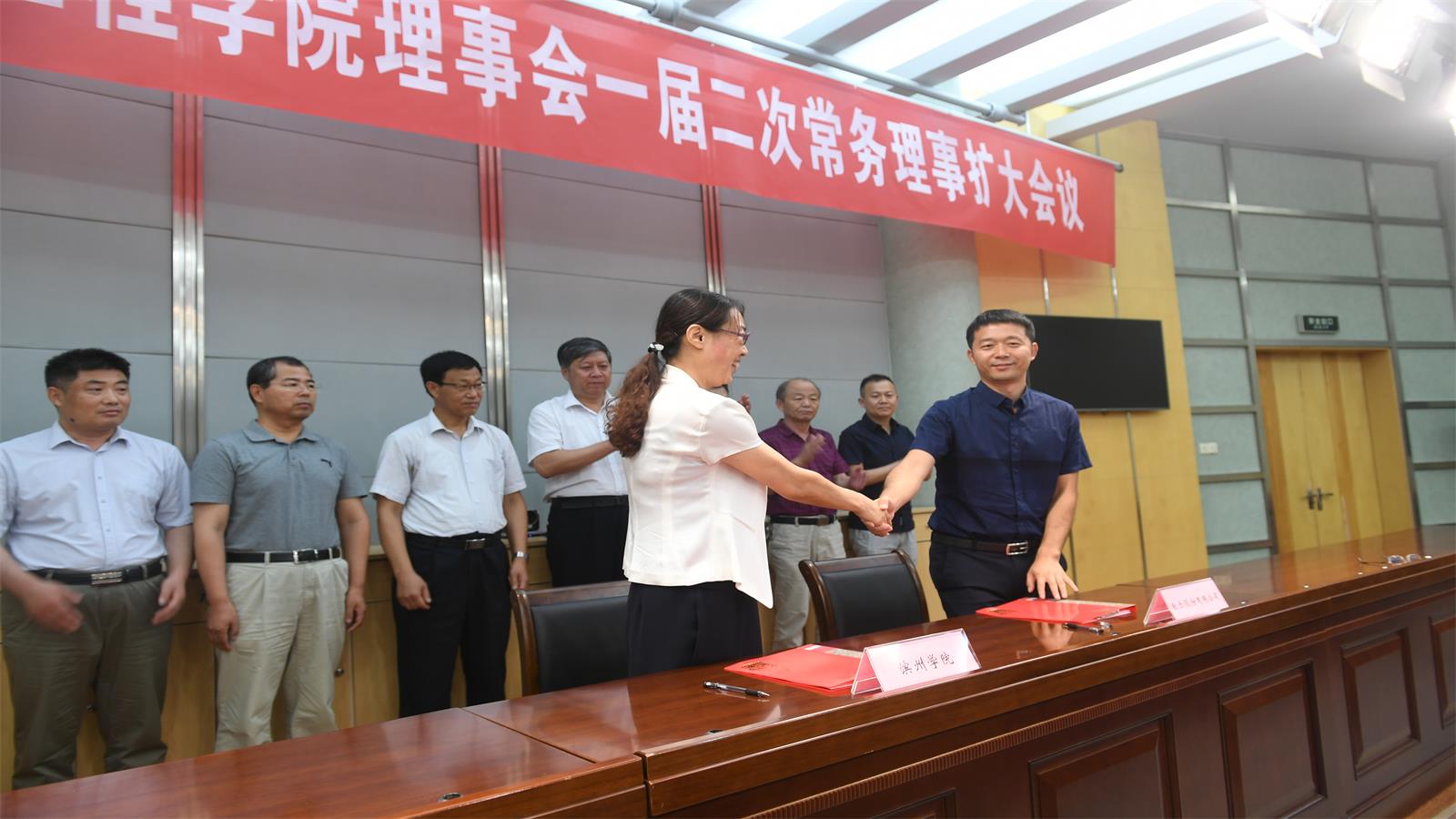 会上,增补歌尔股份有限公司、香驰控股有限公司、东辰控股集团有限公司为常务理事单位,增补东方蓝天钛金科技有限公司、山东渤海油脂工业有限公司为理事单位。公司与歌尔股份有限公司、香驰控股有限公司分别签订《校企产学研合作协议》。与会理事分别作了交流发言,对机电工程公司和理事会的工作提出了建设性意见和建议。