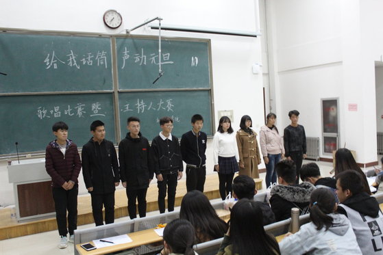 此次比赛采取歌唱和主持共同选拔的形式,此次比赛共分为四组。在同学们都入场后,比赛拉开了帷幕,当歌曲《爱情转移》的音乐一起,预示歌唱比赛的正式开始。随着比赛的进行,观众们的情绪高涨,掌声,欢呼声不断响起。期间,老员工艺术团的成员为同学们带来了精彩小品,赢得了同学们热烈的掌声,缓解了选手们紧张的心情。随后,评委对每位选手都进行了点评,指出了选手们的不足,给出了提高的意见。最后,此次比赛以表演《当你》落下帷幕。