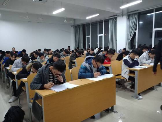 六点半准时开考,学习部干事一一分发试卷,考生们拿到试卷后迅速进入答题状态!考生们拿着笔在草稿纸上写写画画,在试卷上书写答案,只听得见考场中沙沙的答题声。虽然高数是一门很难的学科,但通过考生们的答题状态可以看出考生们的学习状态和学习心境,他们已经逐渐的进入考研状态。