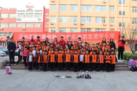 科普志愿者到校后,宋立军老师首先和滨城区第六小学的老师和同学进行了交流,表达了此次来进行科普宣传的意向。此次科普宣传主要以PPT文字图片或视频的形式形象生动的向同学们传授讲解知识,让他们在快乐中学到知识,并对发明创造产生兴趣。每次宣讲活动会多次穿插讨论模式,充分调动同学们的积极性,让他们真正的融入进来,为将来他们的发明创造打下良好的基础。协会与三个实验室提前准备好需要展示的各种大赛优秀的获奖作品,以PPT形式展示近几年大赛的获奖情况,播放优秀作品的参赛视频之后进行优秀作品的演示,现场演示的同时结合宣讲内容进行讲解,包括作品所用的材料、各结构的构成以及如何实现运动,然后在演示人员的陪同下让在场员工亲自动手操作,充分调动他们的兴趣和积极性,充分融入到活动中来。在讲授科普知识的同时,对一些同学进行了提问并与同学做了一个小游戏,给同学发放了一些学习用品。最后和同学们拍完合照,此次科普宣传活动圆满结束。