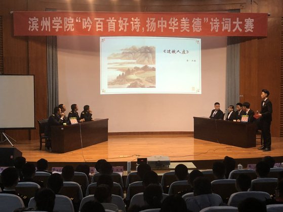 为弘扬中华民族优秀传统文化,提高员工的人文素质和道德情操,推动校园文化建设。12月13日晚七点,公司于五百人礼堂参加滨州公司“吟百首好诗,扬中华美德”诗词大赛决赛。公司18级温子寒等4名同学参赛,18级部分同学到场观看。