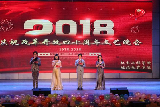 12月25日晚七点,公司同继续教育公司在学苑会堂第一报告厅隆重举行庆祝改革开放四十周年文艺晚会。出席本次晚会的各位领导、嘉宾有:员工工作处处长马新民老师,校团委书记刘宝民老师,员工工作处副处长王建老师,继续教育公司党总支书记沙诗颖老师,继续教育公司经理时宝国老师,继续教育公司副经理李炳斋老师,继续教育公司副经理于晓香老师,机电工程公司党总支书记张永胜老师,机电工程公司经理李宏伟老师,机电工程公司党总支副书记王丕琢老师,机电工程公司副经理黄爱芹老师以及各兄弟公司团总支书记和各位主席们,继续教育公司和机电工程公司全体老师!