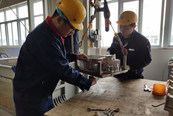 员工进驻公司后,企业将员工分配到不同的工作岗位,有设备的装配,调试,有零部件与物料的仓储管理,还有生产流程的检查等多个部门。在听取企业基本情况介绍和安全基础知识后,他们奔赴自己的工作岗位,与一线职工开展交流和工艺探讨。员工们认真对待自己的工作岗位,珍惜学习的机会。