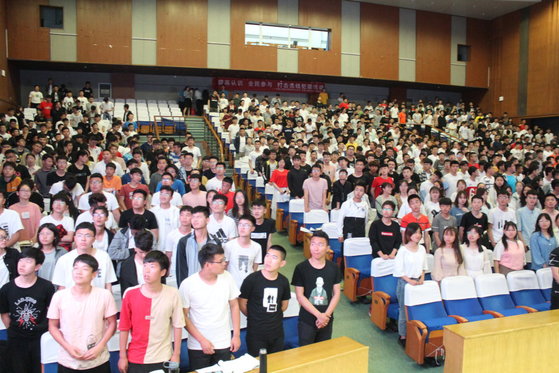 靳老师围绕“弘扬五四精神,做新时代中国青年”,从四个方面进行了讲解,一是什么是五四运动,二是五四运动的历史意义,三是五四精神的时代内涵,四是新时代中国青年的担当与使命。靳老师首先通过十道题目引入正题,这极大地调动了同学们参与的积极性,整场团课都互动有序、气氛热烈,尤其是第四部分新时代中国青年的担当与使命中,她结合榜样的先进事迹,提出的一个个反问,引人深思,促人警醒,催人奋进。团课最后,在靳老师的提议下,全场起立,一起高唱《我和我的祖国》。