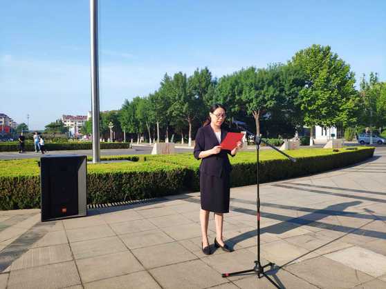 此外,2019届毕业生代表窦成龙同学发言,向母校表达了最诚挚的谢意和对师长、同学的深深情谊,并表示将在新的人生征程中求实、奋进,为筑就“中国梦”贡献力量。另外,全体毕业生在机电工程公司李明飞同学带领下,面向国旗庄严宣誓,用铿锵有力的誓言,表达着勇于担当的信念和对未来的美好期望。