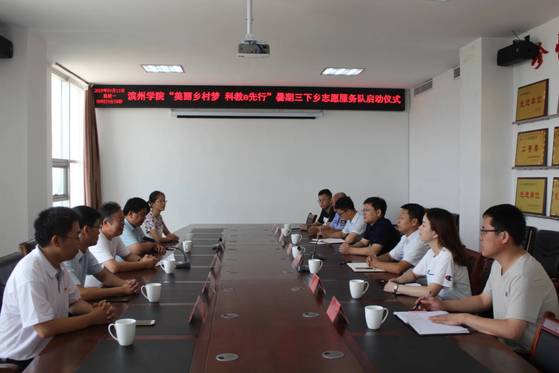 为聚焦学习宣传习近平新时代中国特色社会主义思想、投身助力实施乡村振兴战略六大行动,滨州公司机电工程公司“美丽乡村,科教e站”团队于2019年7月15日上午9点30分到达目的地滨州市阳信县温店镇镇政府参加暑期三下乡社会实践启动仪式。此次暑期三下乡启动仪式公司党总支书记张永胜、党总支副书记王丕琢、校团委副书记冯川、公司辅导员宋立军、靳雪银老师和团队成员及温店镇党委书记刘海青、党委副书记王新刚、办公室主任曹磊、团委书记郭婷等领导到场参加此次暑期三下乡社会实践活动启动仪式。