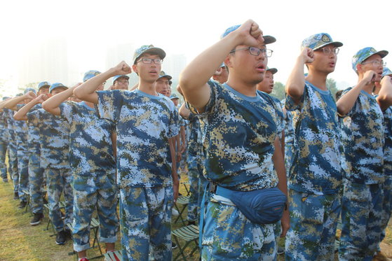 伴随着鼓舞斗志的歌声,国旗队迈着整齐的步伐,庄严的走向升旗台,完成出旗。在激动人心的国歌声中,五星红旗冉冉升起。同学们肃立,行注目礼,向国旗致敬。随后进入宣誓环节,一句句铿锵有力的誓词代表的是员工们的决心,立鸿鹄志,做奋斗者!最后全体新生合唱歌曲“我和我的祖国”,员工们带着真挚的感情在歌声中全部表达,紧紧的把自己与祖国时时刻刻联系在一起!