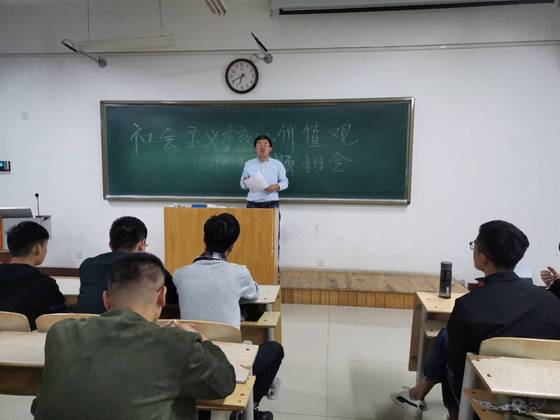 班会伊始,各班班主任着重强调了当代青年要牢记24字社会主义核心价值观,并将其转化为我们的情感认同和行为习惯,充分发挥社会主义核心价值体系的影响力。随后,班主任为了让同学们清晰的认知社会主义核心价值观的内容,先让同学们自由讨论践行社会主义核心价值观的意义,其后班主任用日常生活语言展示了社会主义核心价值观的丰富内涵和精神实质。对此,同学们懂得了社会主义核心价值观虽短短24个字,但内容异常厚重,从三个方面,十二个具体层面给出了最精准的浓缩,既是我们国家社会、法制保障、道德文化方面所追求和实现的最高目标,又是作为具体人而需要恪守的基本行为规范。最后,班主任将社会主义核心价值观与日常生活主体联系起来,以便我们充分了解和重视日常生活主体所关注的现实问题,并以此来寻找推动社会主义核心价值观内化于心、外化于行的现实切入点。