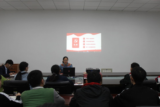 靳雪银以典型生动的事例、通俗易懂的语言,结合党史,从申请入党的条件、党员的基本条件、党员的权利和义务、争做一名合格党员四个方面进行了深入浅出的讲解。她以党章为参照,介绍了从中共一大至今申请入党条件的演变,带领党员们深刻领会党章对入党条件的规定,用“觉悟”“服务”“普通”三个词概括了一名共产党员应该具备的条件,阐述了党员权利和义务的逻辑关系,指出履行义务是行使权利的前提,行使权利是履行义务的保障,并结合十八大以来习近平总书记在多次考察、会议上的重要讲话,就如何争做合格党员给全体党员提出了明确要求:一是要遵守党章、加强党性,二是要坚定信念、加强学习,三是要遵纪守法、务实工作,四是要率先垂范、发挥作用。她强调全体党员时刻要以“不忘初心、牢记使命”主题教育为契机,不忘初心、牢记使命,以党员标准来检视初心,归正初心,展现新担当、树立新形象,做对党绝对忠诚的合格党员。