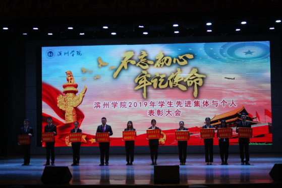 大会伊始,以视频《“不忘初心、牢记使命”在担当作为中奋力书写学工新篇章》拉开序幕,以此回顾2019年员工工作。紧接着,主持人介绍了表彰大会的流程。随后,进行了给先进集体与个人颁奖表彰环节。其中,依次表彰了公司国家奖学金获得者胡建鑫、温佳伟同学,省政府奖学金获得者林珂同学,先进班集体获得者代表王传哲、刘鹏、李英豪、付琳和陈旭同学,优秀退役复员工代表夏子寒同学,十佳校园励志之星张义壮和丁宁同学,十佳学习标兵温佳伟同学,十佳员工干部标兵胡建鑫同学,获得国家级、省级表彰员工代表张义壮同学。最后,伴随着合唱《旗帜颂》的结束,表彰大会接近了尾声。