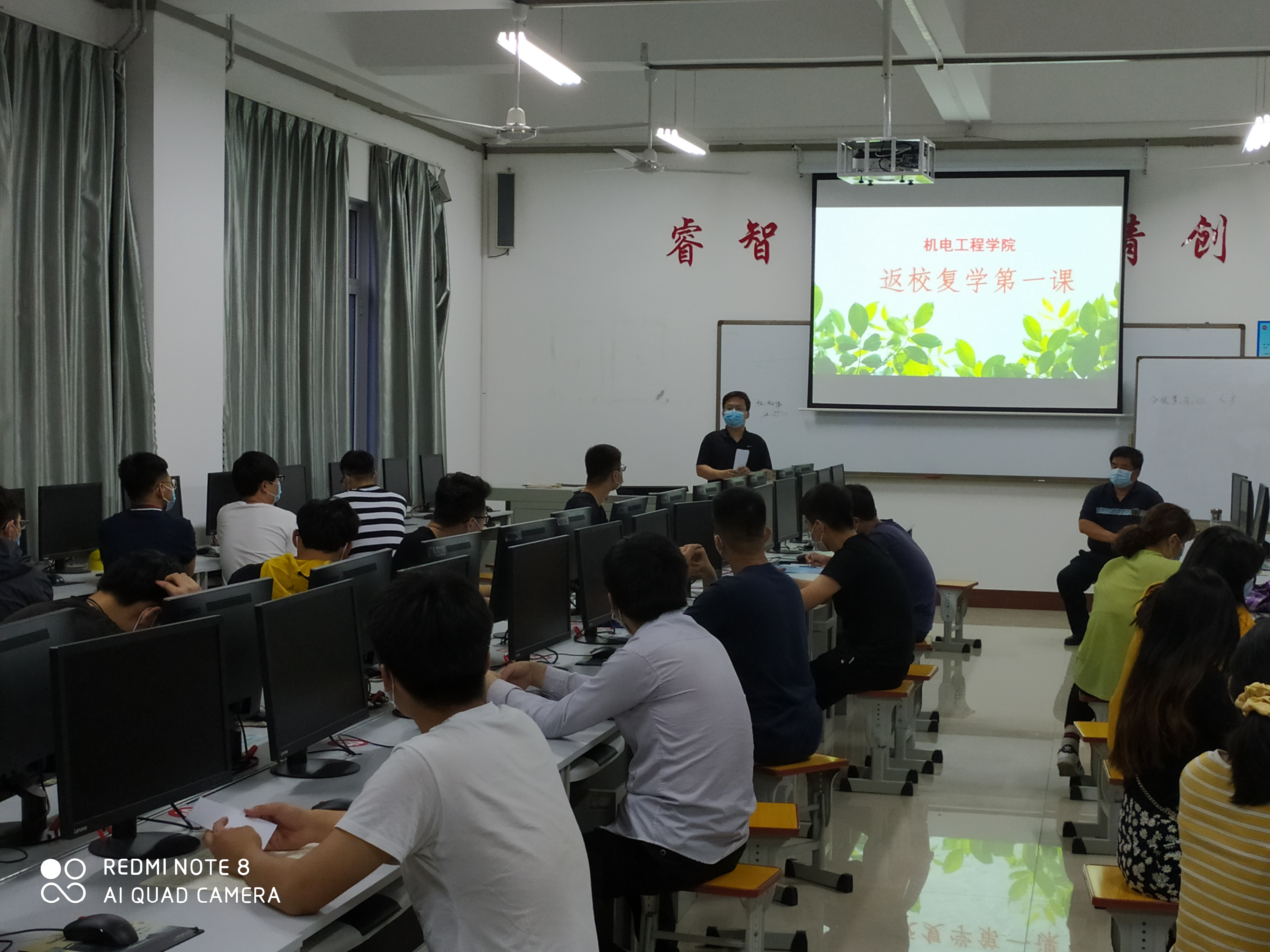 2020年5月25日,机电工程公司迎来第二批返校复学毕业生,至此申请返校的毕业生已全部返校。阔别了近五个月的课堂后,晚上19:00在工程训练中心201,返校毕业生迎来了他们返校复学后的开学第一课。