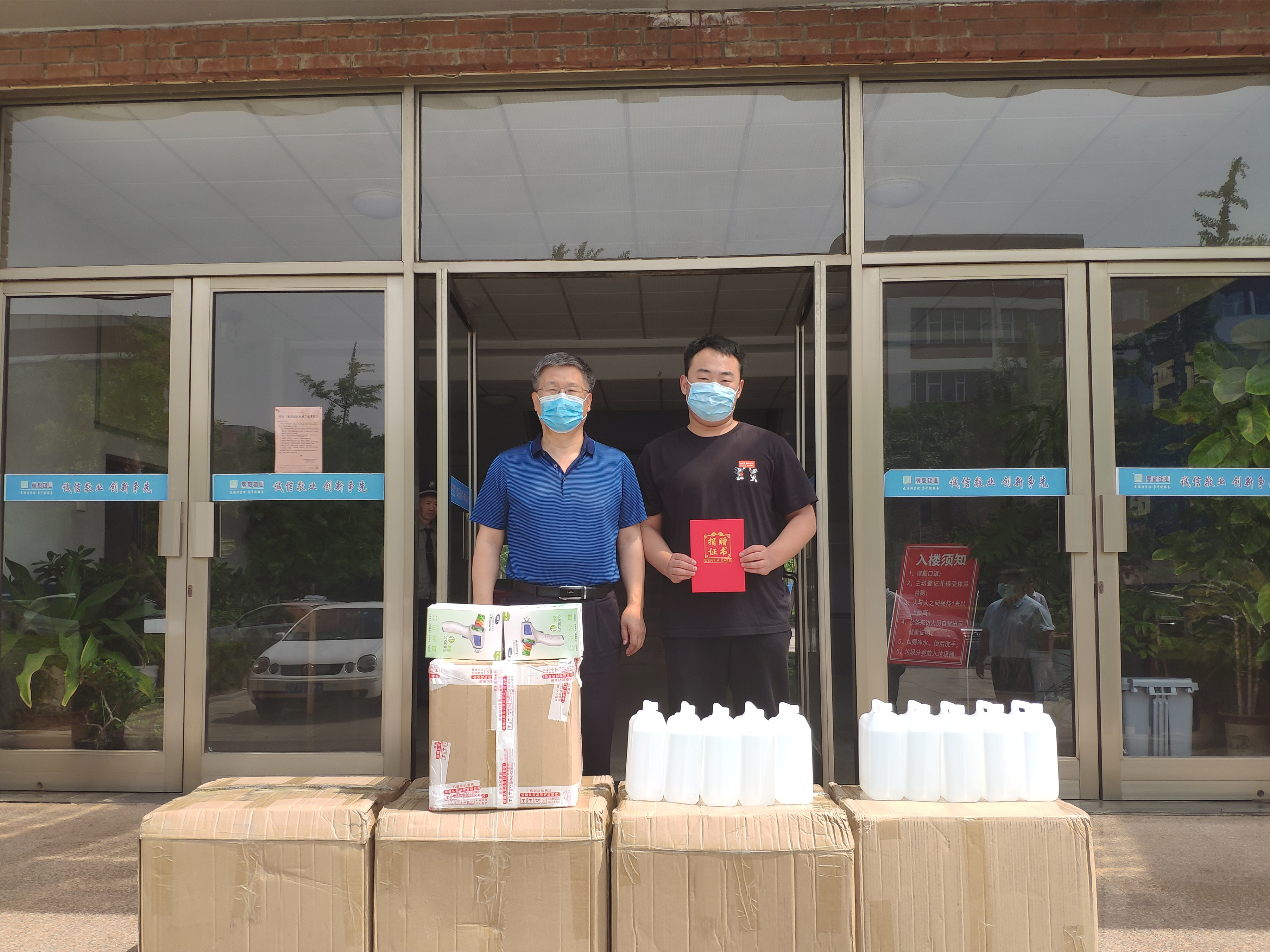 “我能有今天离不开公司的培养,毕业之际能为公司出一份力我倍感荣幸”,机电工程公司罗轩同学说。6月2日上午,正在创业的他,向公司捐赠了10000个口罩、20个耳温枪、10桶酒精消毒液,为公司疫情防控贡献了自己的力量。员工工作(武装)部(处)处长贾卫东、后勤管理处处长陈国林代表公司接受了捐赠,员工工作(武装)部(处)处长贾卫东向罗轩颁发了捐赠证书,机电工程公司党总支书记王丕琢及全体辅导员参加捐赠仪式。