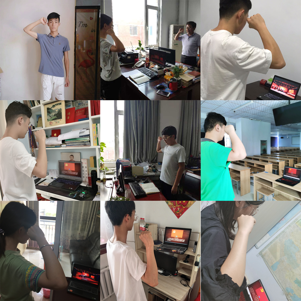 一个个抗疫榜样的感人故事为全体党员上了深深难忘的一课,他们不惧风雨、坚守岗位,用实际行动诠释了责任与担当,在每位党员心里树起了学习标杆。跟随节目,支部党员全体起立、举起右拳,与眼前榜样一起重温了入党誓词,再次让那铮铮誓言镌刻在了心灵深处。