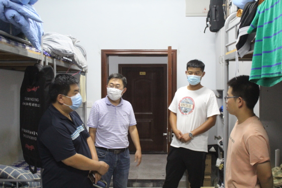 为了解员工返校情况,加强疫情期间员工防控知识进一步提高员工安全意识,倡导员工文明住宿。2020年8月23日晚,公司党总支书记王丕琢及辅导员宋立军老师深入员工公寓,走访了解员工生活情况,排查宿舍安全隐患。