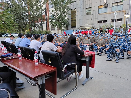 为了锻炼新生们的体魄,磨练新生们的意志。9月13日机电工程公司在工训楼前召开军训动员大会,本次会议机电工程公司辅导员宋立军老师主持,党总支副书记王春磊,辅导员刘云龙老师和韩娇娇老师。机电工程公司全体新生参加。