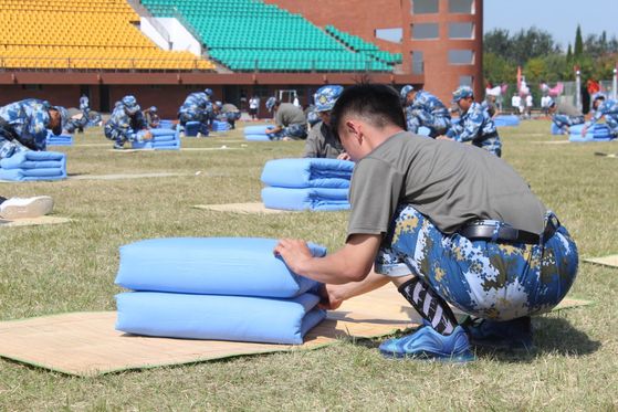 本次比赛要求参赛选手须在规定时间五分钟内叠完军被,后由教官代表进行打分。随着主持人“3、2、1!开始!”的号令,同学们纷纷开始叠军被。每个人的动作都十分利落而娴熟。选手们很认真,争分夺秒,仔细得叠好每一步,铺展开被子并用力压实,仔仔细细抹平褶皱,后用指尖卡角,捋直军被边缘,用手掌切出缝隙,将被子两面翻叠,并对整体的被子形状进行修整,认认真真地捏出被子的棱角。细致入微的动作,严肃认真的面容,体现出了公司新生细心认真、务实肯干的精神品质。随着裁判的哨声,同学们立刻放下手中军被,立正站好,并在教官的指挥下有序撤离。随后教官评委逐个对现场的选手叠军被的作品进行打分。至此,本次比赛圆满结束。