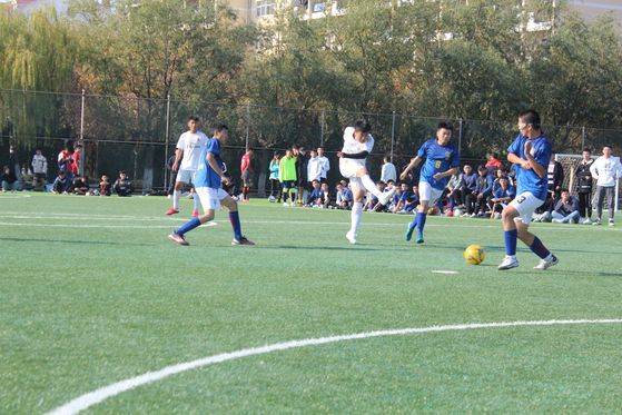 绿茵点亮梦想,激情舞动青春。寒冷的天气挡不住大家的热情,足球比赛开球,主裁判和巡边员带领双方对员入场、向替补球员致意,然后双方队长在主裁判的主持下挑边儿,挑对的一方有权选择先开球、让对方开球和球场的方位三选一。然后双方队长、主裁判、巡边员相互握手,双方队员各回本方半场加油助威。最后由开球方两名队员进入中圈执行开球,主裁判鸣哨开球,刚开始,建筑工程公司先得了一分,大家顿时感到有点紧张。还好,功夫不负有心人,公司紧接着追上了一球。随后比赛进去焦灼阶段,最终,机电工程公司以2:1脱颖而出,获得本次比赛的冠军。此时此刻,掌声,欢呼声布满整个足球场,替补队员跑到10号球员面前,将其一次又一次地高高举起。