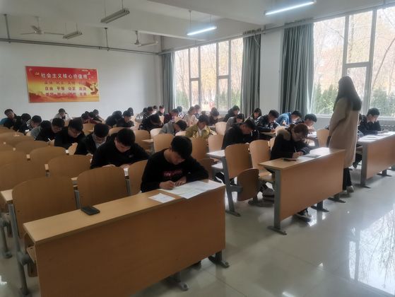 同学们都提前进入考场积极备考、认真准备。考试开始前同学们统一上交手机、课本等与考试无关的物品,认真遵守考试纪律。八点半考试准时开始,学习部干事为考生一一分发试卷,考生在拿到试卷后迅速进入答题状态,仔细审题,认真答题。在考试过程中,为保证考场的纪律,学习部的干事们流动巡查,同时他们放轻脚步,以防打扰考生们答题。而考生们则一丝不苟地答题,希望通过这次模拟考试认清自己的不足,为正式考试的到来做准备。本次模拟考试总时长150分钟,11点考试准时结束。考试结束后,全体考生立即放下笔并停止作答,等待学习部干事收考卷及答题纸。最后,考生们在学习部干事的引导下有序地离开考场。