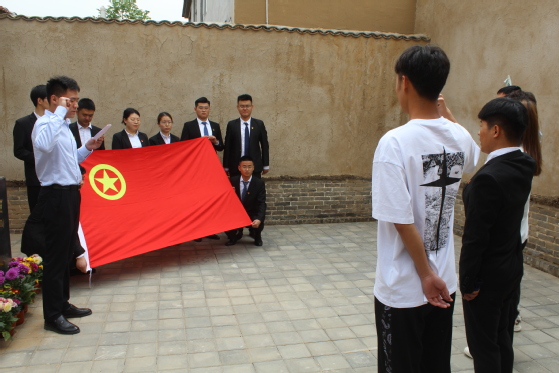 “承先辈精神,聚新生力量”,为壮大团组织力量,为团组织输入新鲜血液,注入新活力,5月8日上午10点,机电工程公司团总支组织2021年新发展团员赴阳信县河流镇张集村毛岸英旧居参观学习,并在毛岸英雕像前庄严举行2021年新发展团员入团仪式。本次入团仪式由2020级辅导员刘云龙主持,辅导员宋立军、韩娇娇,程兆琳、高志宇、孙靖宇、隋骁、闫玉刚等五位新发展团员和部分2017级优秀员工党员代表参加仪式。