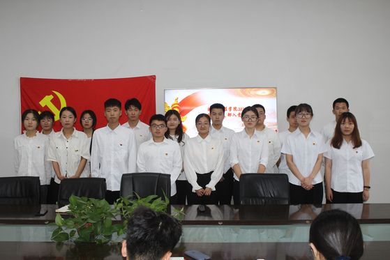 “我志愿加入中国共产党,拥护党的纲领,遵守党的章程,履行党员义务,执行党的决定,严守党的纪律,保守党的秘密,对党忠诚,积极工作,为共产主义奋斗终身,随时准备为党和人民牺牲一切,永不叛党”。6月15日下午五点,在工程训练中心316会议室,机电工程公司员工党支部新发展的26名预备党员在鲜红的党旗下庄严宣誓,用铿锵有力的宣誓声立下对党的铮铮誓言,用隆重神圣的仪式感铭记入党的初心使命。