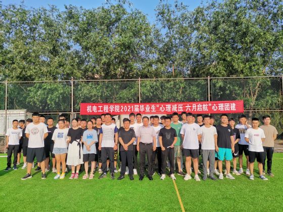 为增进2021届毕业生情感交流,缓解毕业生心理压力,6月11日机电工程公司于足球场开展毕业生心理团建活动,本次活动特别邀请员工工作处心理健康教育与咨询中心主任康纯佳作为嘉宾,机电工程公司员工科科长宋立军,辅导员刘云龙以及2021届毕业生参加活动。