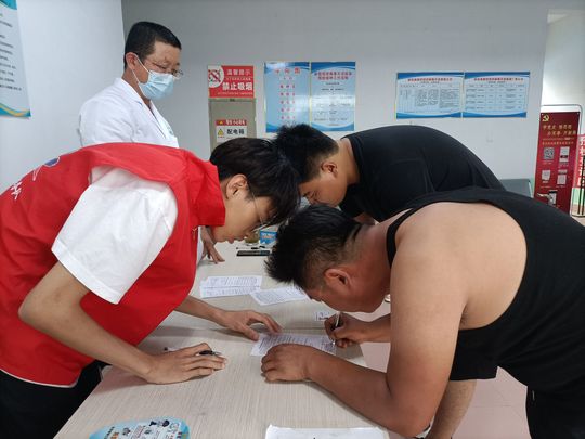 助力疫苗接种,志愿服务基层。昨天,机电工程公司“美丽乡村,科教e站”志愿服务队在抵达阳信县金阳街道办事处后,了解到办事处当前在疫苗接种工作方面面临着空前的压力。在团队成员短暂的商讨之后,决定临时改变活动计划,团队成员先全体投入到办事处的疫苗接种工作中来。