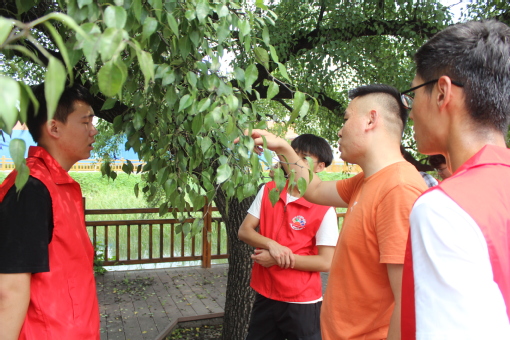 参观完毕后,队员们又了解了万亩梨园特色农业的发展近况,得知近来由于病虫害和暴雨,梨园果树也受到了一定程度的影响。针对梨园发展所面临的各种的问题与困扰,队员们经过讨论交流,分别提出了自己的意见,并结合自己的专业优势,对梨园未来发展提出了自己的想法。