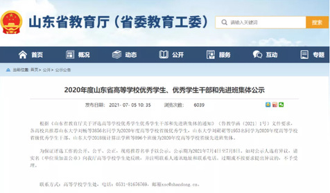 7月5日,山东省教育厅发布了《2020年度山东省高等公司优秀员工、优秀员工干部和先进班集体公示》,全省共有3856名同学入选2020年度高等公司省级优秀员工、1953名同学入选2020年度高等公司省级优秀员工干部、896个班级入选2020年度高等公司省级先进班集体。