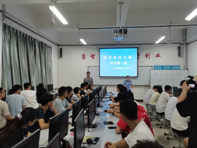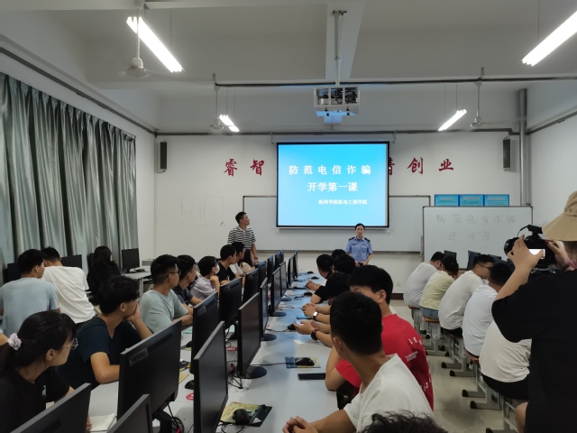 为增强员工的防诈骗意识,提升防诈骗能力,8月30日,机电工程公司联合彭李派出所在工程训练中心201教室开讲防诈骗主题的开学第一课。本次开学第一课的开讲嘉宾是彭李派出所资深民警张警官,机电工程公司辅导员、全体员工干部参加本次活动。