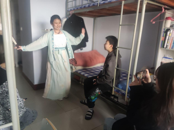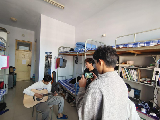 同学们通过歌曲、舞蹈、戏曲、吉他弹唱等形式,带动起舍友一起加入进来,大家用手电筒作为氛围灯,随着音乐打起节拍,现场温馨而感动,拉近了舍友之间心与心的距离,疫情封闭了校园,但封不住青春。