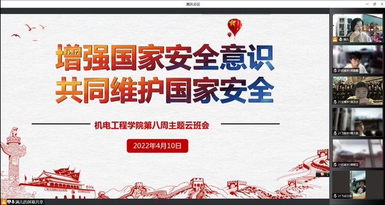 国家安全是安邦定国的重要基石,为切实提高全体同学们自觉关心、维护国家安全的意识,4月10日晚7点,机电工程公司召开了“增强国家安全意识,共同维护国家安全”的主题班会,此次会议由机电工程公司各年级辅导员主持召开,机电工程公司全体员工参加。