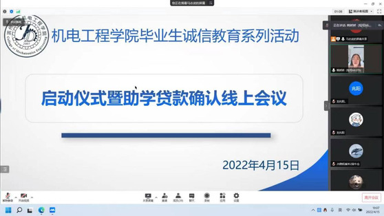 为大力培育和践行社会主义核心价值观,进一步提升全院员工的诚信意识,帮助助学贷款员工开展毕业确认工作,机电工程公司于2022年4月15日晚19点召开毕业生诚信教育系列活动启动仪式暨助学贷款确认线上会议。会议由辅导员韩娇娇主持,助学联合会全体成员和各年级部分员工代表参加。