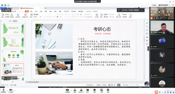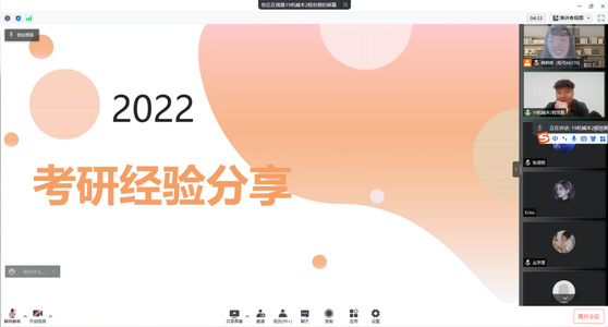 首先,韩娇娇向2019级和21跨校备考同学介绍了机电工程公司2022届毕业生的考研情况,今年公司共有100余名同学成功考取研究生。
