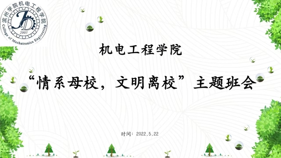 为做好2022届毕业生教育、管理和服务工作,确保毕业生离校前工作的顺利开展,倡导毕业生文明有序离校,机电工程公司于5月22日组织召开了2022届毕业生“情系母校、文明离校”主题班会。本次主题班会由各毕业班班主任主持召开,机电工程公司全体毕业生参会。
