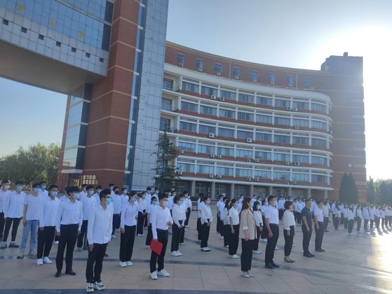 朝阳下,全体师生合影留念。
