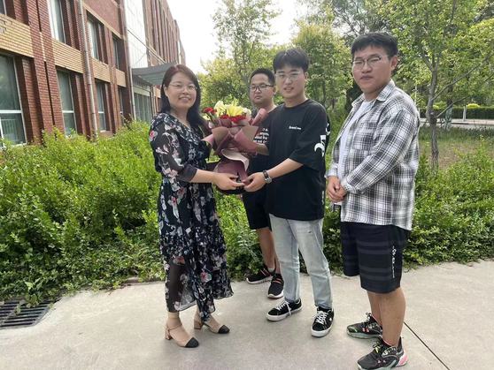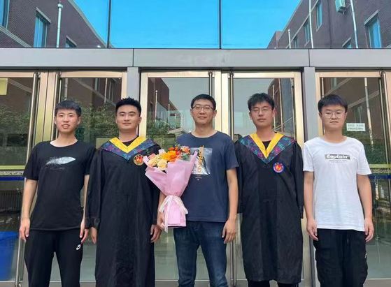 假期里,王宏伟和同学们就商量着在毕业前为冯川老师献上一束鲜花,感谢他过去四年里在学术上的悉心指导和生活上的时刻关心。他一路将鲜花护送到机电工程公司,送到了冯川老师的手中,并与老师合影留恋,为大学四年本科生涯画上了圆满的句号。
