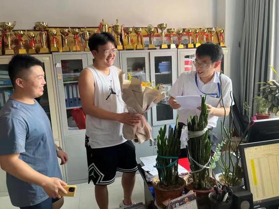即将毕业的杨洛辰说“老师,感谢您四年来的谆谆教诲。这几年来,您的鼓励和支持让我获得了前所未有的自信和成就感。” 四年来,黄爱芹老师经常劝说员工做事不要轻言放弃,鼓励员工要敢于失败,敢于奋斗。给予了员工莫大的支持和鼓舞。手捧鲜花拜访最尊敬的老师,说一声感谢,照一张合影,放下最难舍的别离,结下最真挚的情谊,品味最深刻的感动。