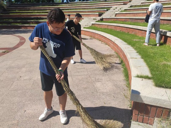 下午2:30,参加活动的志愿者们携带卫生工具,早早地到达了指定位置集合,随后进行分工,积极有序地开展一系列工作。机电工程公司团总支书记张丛丛以身作则,主动带头,拿起簸箕、扫把等工具,开展卫生清洁工作。在志愿服务活动中,大家分工明确,积极主动,互相配合,对水上广场的角角落落都进行了认真清理。烈日炎炎,即使已经汗流浃背,但志愿者们的情绪依然高涨,秉持不怕苦、不怕累的精神,以严谨的工作态度,认真清理道路两旁的垃圾,充分发挥了党员和先进团员的先锋模范作用,展现了奉献精神。