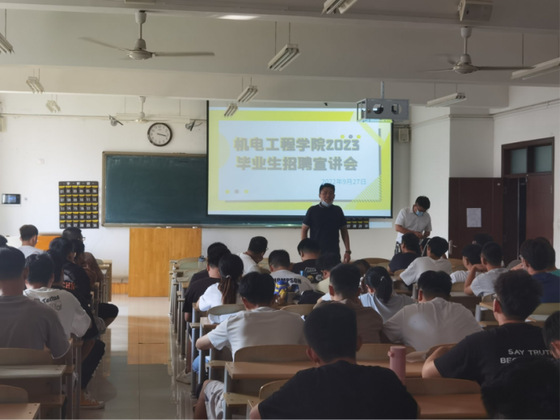 招聘会伊始,刘云龙向到场的企业工作人员、老师和同学们表示热烈的欢迎。随后,企业的相关工作人员借助视频和幻灯片展示,向同学们介绍了公司的基本情况,使同学们对企业有了初步的了解。接着又向同学们介绍了公司的规章制度、福利待遇、企业文化等。在提问环节中,同学们积极踊跃地提出相关问题,并得到了企业工作人员的详细解答。招聘会现场气氛热烈,同学们对自己的就业谋划有了更加清晰和明确的认知。会议最后,招聘方向同学们介绍了企业今年的招聘岗位和应聘要求,并真诚地希望同学们能够来到企业工作,此次招聘会圆满结束。