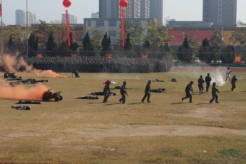 军训汇演在主持人的致辞中拉开了序幕,主持人首先依次介绍了到场的公司领导。紧接着,全体起立,伴随着庄严的升国旗仪式,汇报表演正式开始。2022级全体新生身着军训服,迈着铿锵有力的步伐,喊着嘹亮震天的口号,交出了大学第一课的完美答卷。整齐划一的分列式优秀方队,英姿飒爽的擒敌拳方队、匕首操方队和刺杀操方队,还有让人热血沸腾的模拟射击、综合战术演练,战地医疗救护依次进行了汇报表演。在表演中,各项目队员身姿挺拔、步履坚定、斗志昂扬、口号嘹亮,展现了2022级新同学的蓬勃朝气和无限活力。随着表演项目的一一进行,现场气氛逐渐热烈,掌声喝彩声不绝于耳。最后,主持人宣布了军训汇演荣誉名单并进行颁奖,公司获得优秀成绩。