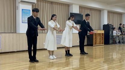 各院代表队都做足了充分准备,举止大方言谈优雅,在评委的面前跳着礼仪操,展现着礼的雅致,仪的气势,现场整齐有序而又饱含激情。音乐的节奏伴着高跟与木地板的敲击声,精致的妆容伴着整齐划一的动作,别是一番风味。机电工程公司率先登场,他们迈着从容自信的步伐,他们举止文雅,做过简单介绍后便开始了礼仪操的展示。音乐轻快,节奏明晰,每一个动作都透露着优雅,每一个节拍都展示着风采。