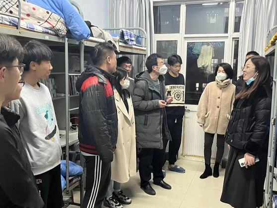首先,辅导员们对宿舍安全隐患进行排查,对宿舍卫生、用电安全以及违禁物品等问题进行强调;其次,对员工的学习规划提出建议,并督促舍长监督同学们加紧复习,顺利通过期末考试;最后,辅导员着重强调寝室关系问题,并嘱咐舍友之间要相互理解、相互帮助,营造良好的宿舍氛围。