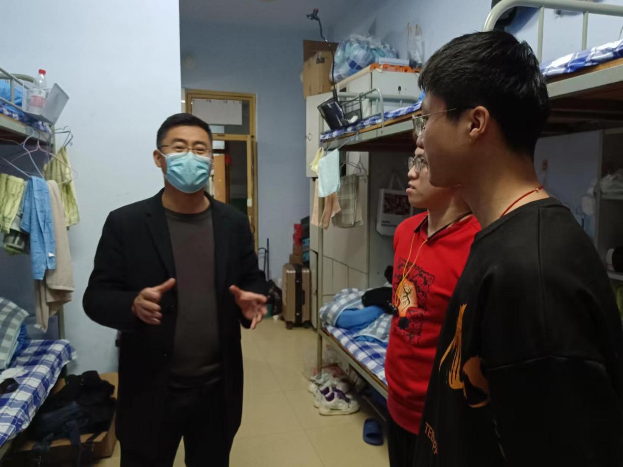 开学初,机电工程公司党总支副书记王春磊、副经理李辉带领全体辅导员、班主任深入员工公寓查看网课情况排查安全隐患并与员工亲切交流。