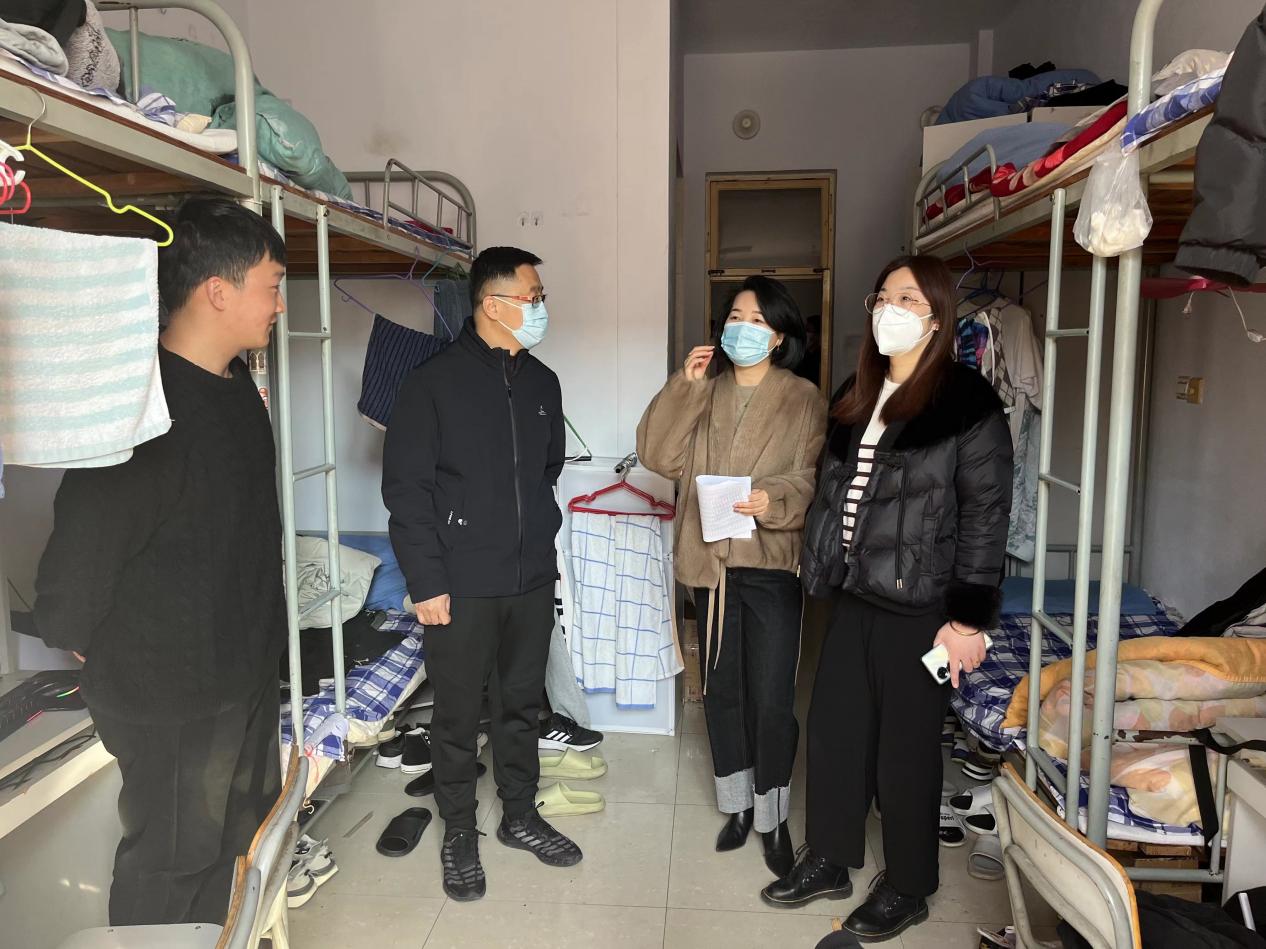 王春磊强调,员工公寓是新时期高校育人最基本、最重要的载体和平台之一,要持续加强辅导员、班主任深入公寓工作,面对面与同学们交流,充分掌握大家的生活、学习、思想动态,帮助解决同学们的实际困难,倾听同学们的心声;要高度重视宿舍安全,及时排查消除各类安全隐患,让员工公寓真正成为安全有序、整洁卫生、优雅和谐的温暖家园。