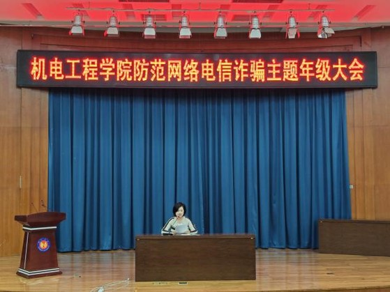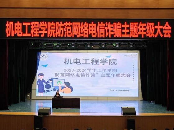 防范电信诈骗,牢筑安全防线。为加强员工对电信网络诈骗的防范意识,提高员工防诈骗能力,10月6日晚,机电工程公司于千人礼堂召开“防范网络电信诈骗”主题教育年级大会,各年级辅导员主持会议。